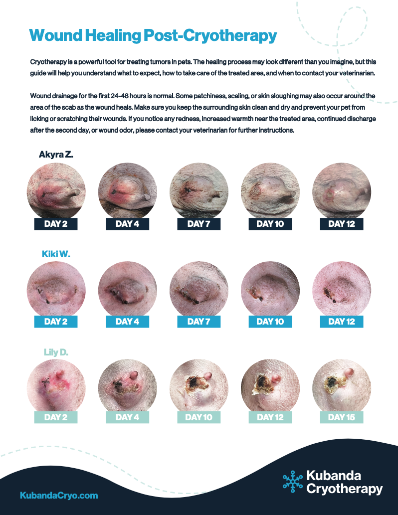 Overview of subcutaneous and topical cryotherapy procedures, including healing outcomes.